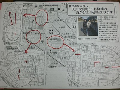 天川大島町3丁目の側溝蓋かけ工事開始、ひさ子通信(5.19)